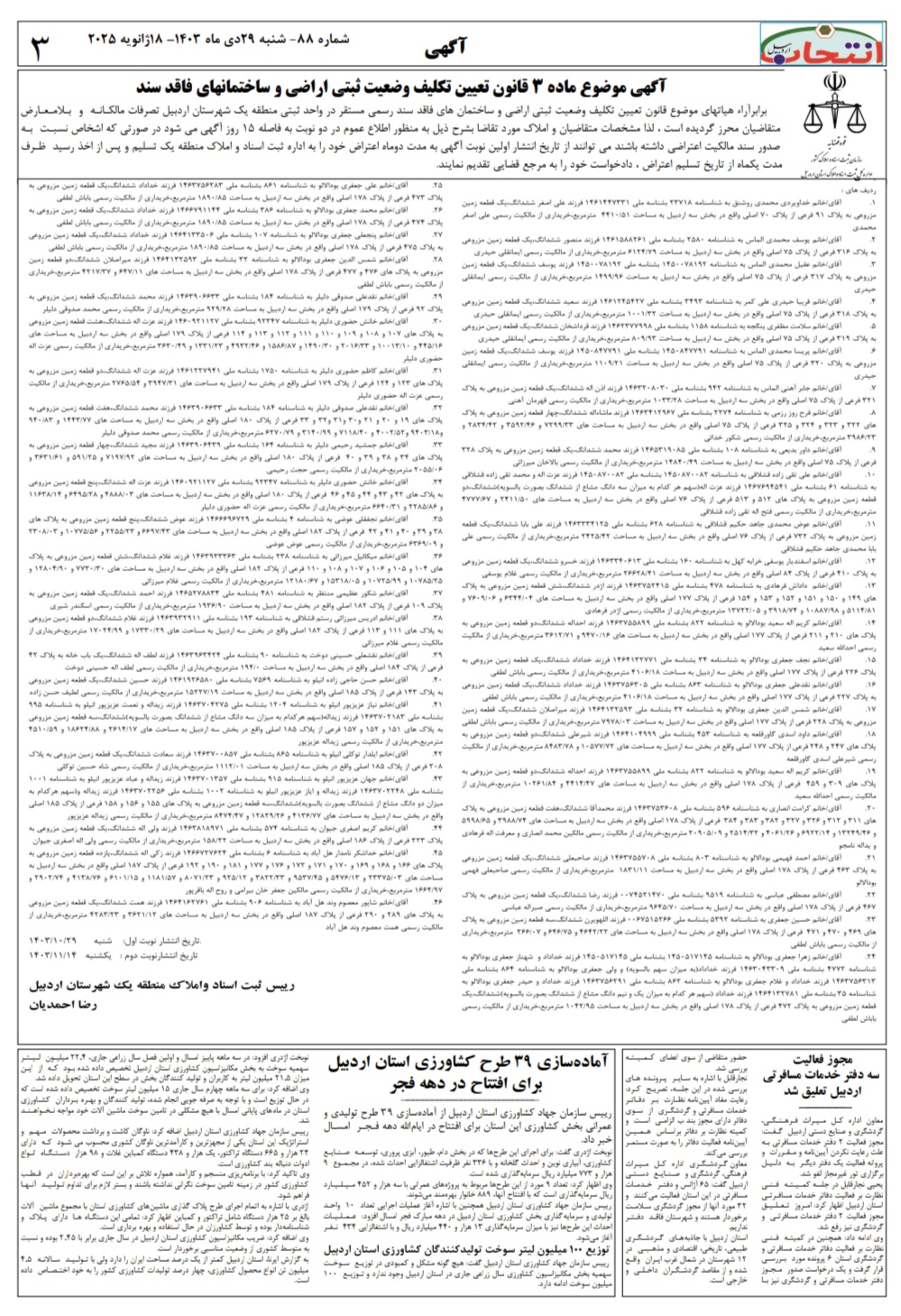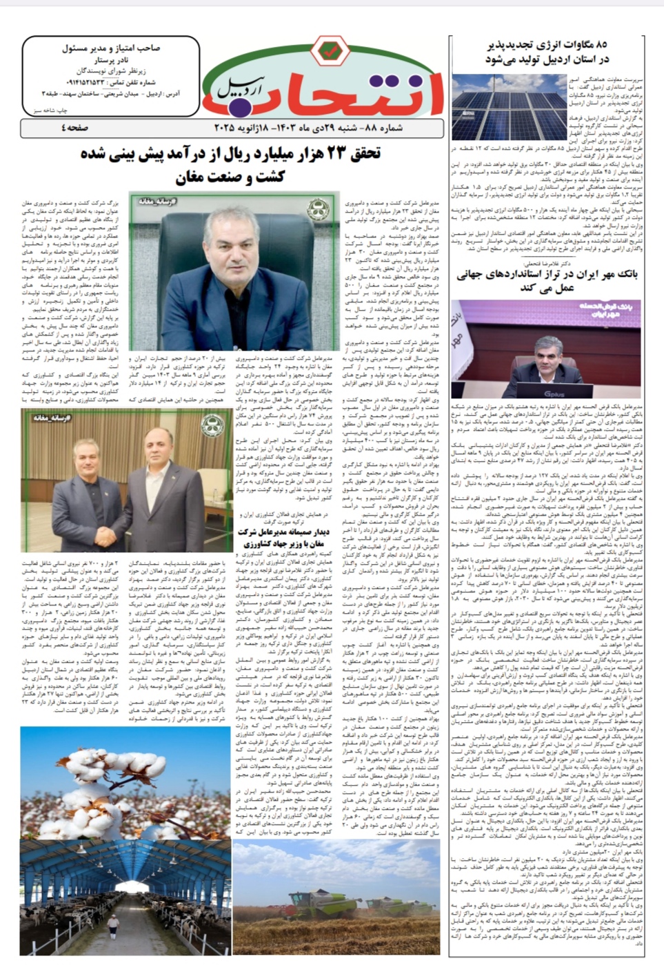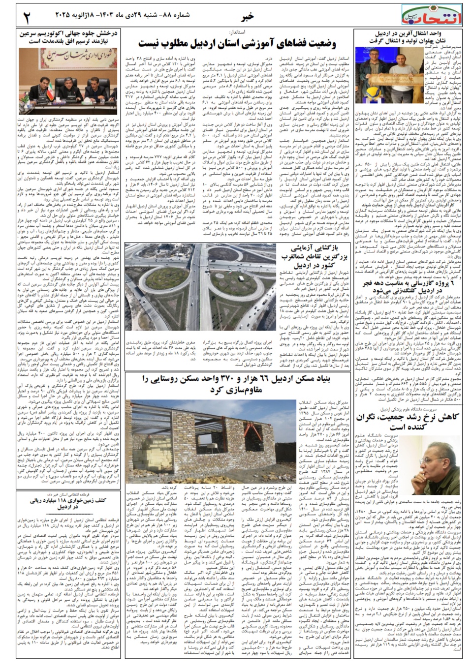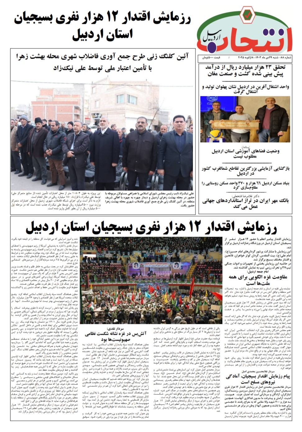 شماره ۸۸ هفتهنامه انتخاب اردبیل در چهار صفحه منتشر شد