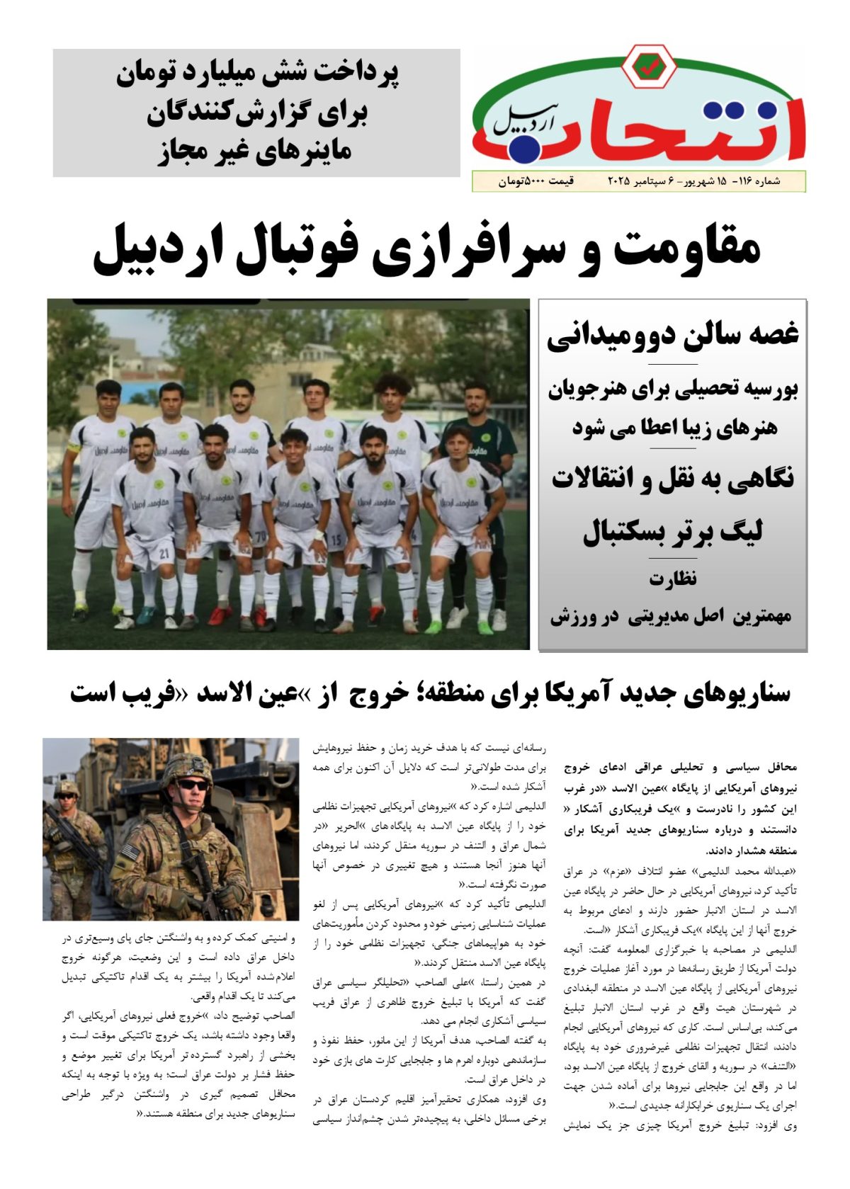 شماره 115 هفته نامه انتخاب اردبی در 8 صفحه منتشر شد.