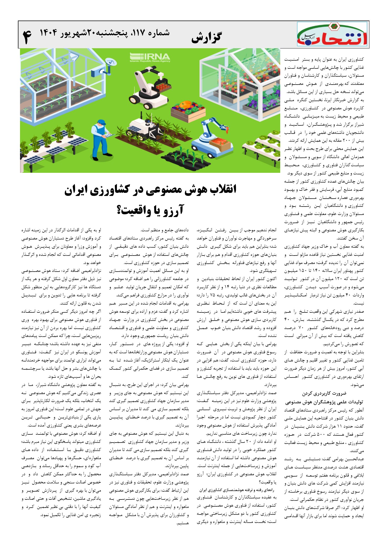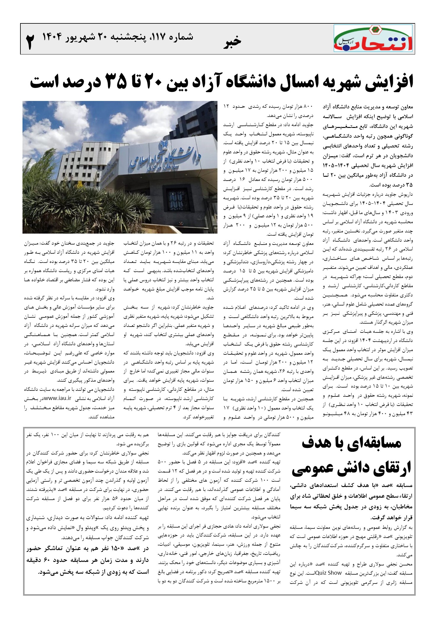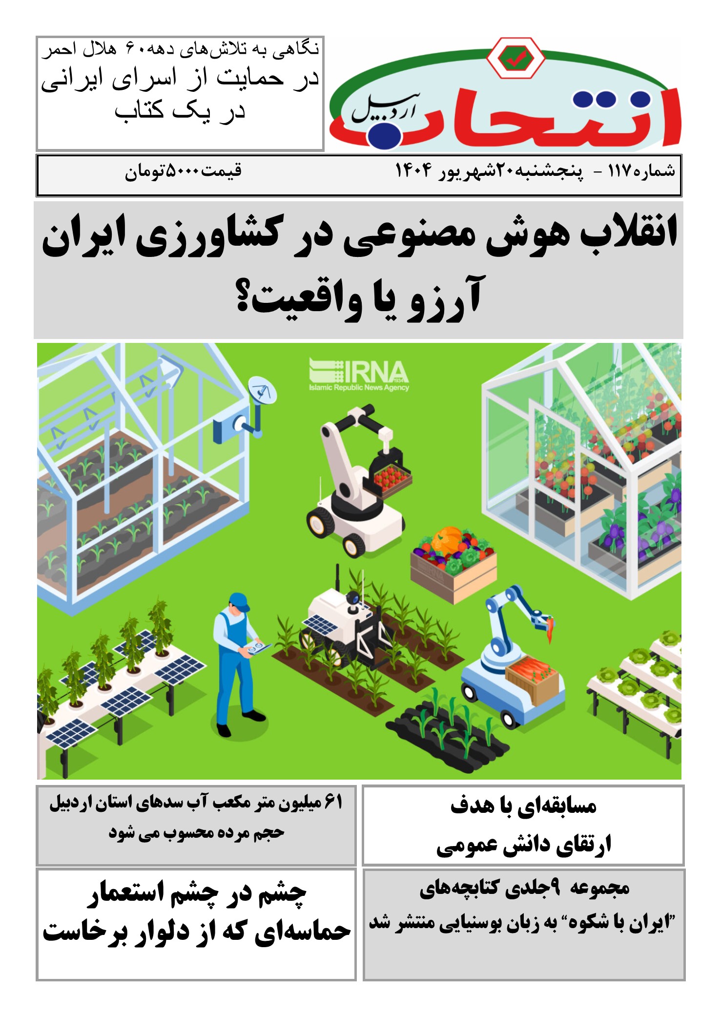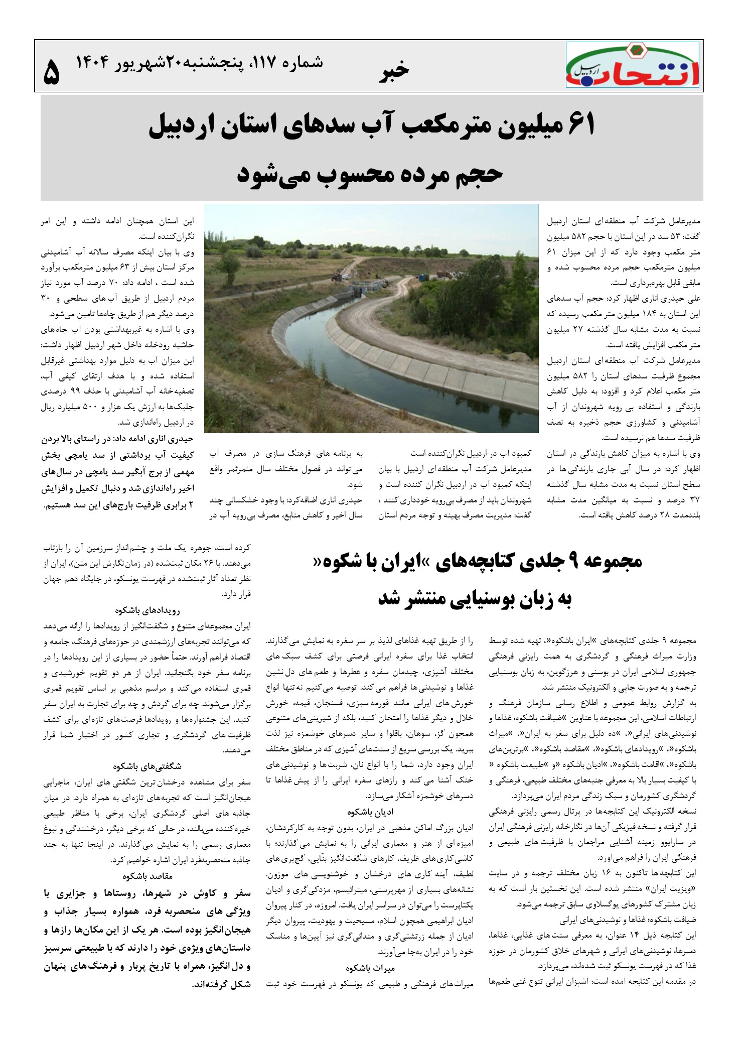 شماره 117 هفته نامه انتخاب اردبیل در 8شت صفحه منتشر شد.