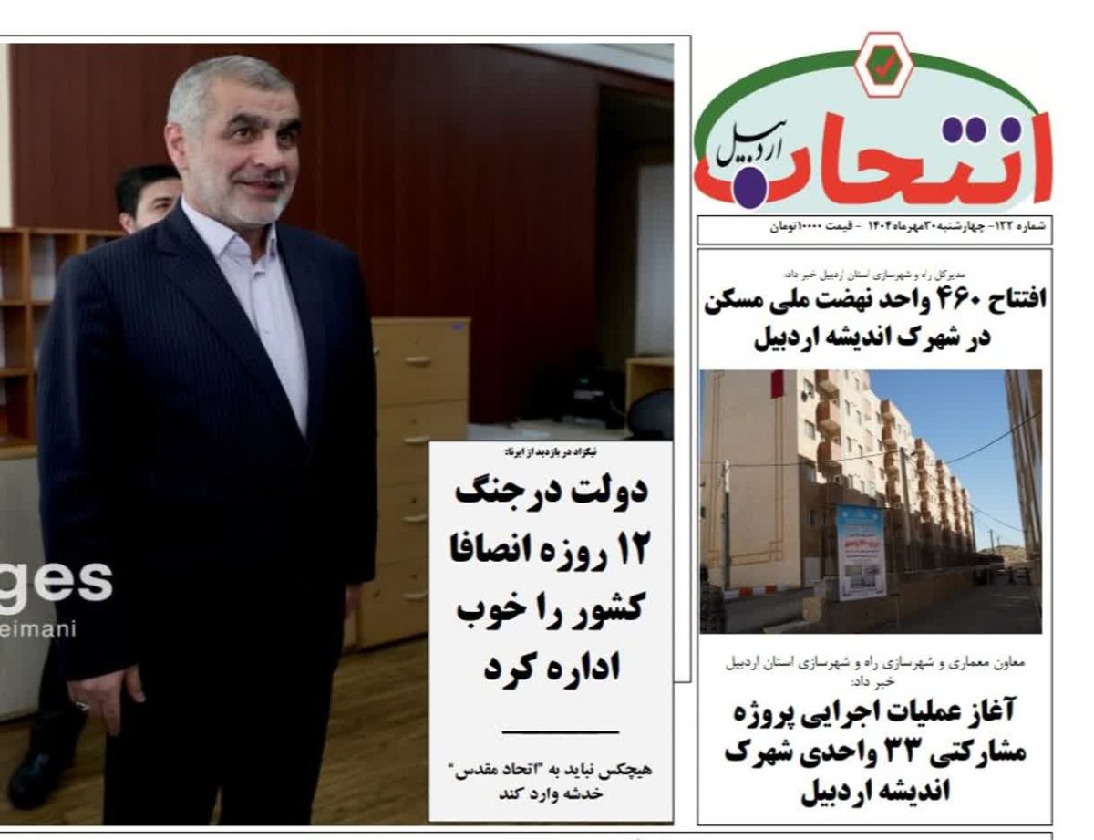 شماره 122 هفته نامه انتخاب اردبیل در چهار صفحه منتشر شد.