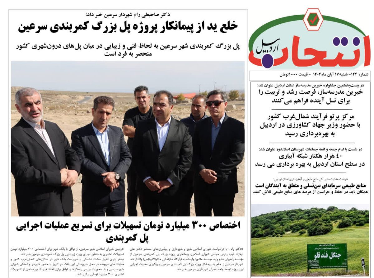 شماره 124 هفته نامه انتخاب اردبیل در چهار صفحه و در قطع 50 در 35 منتشر شد.