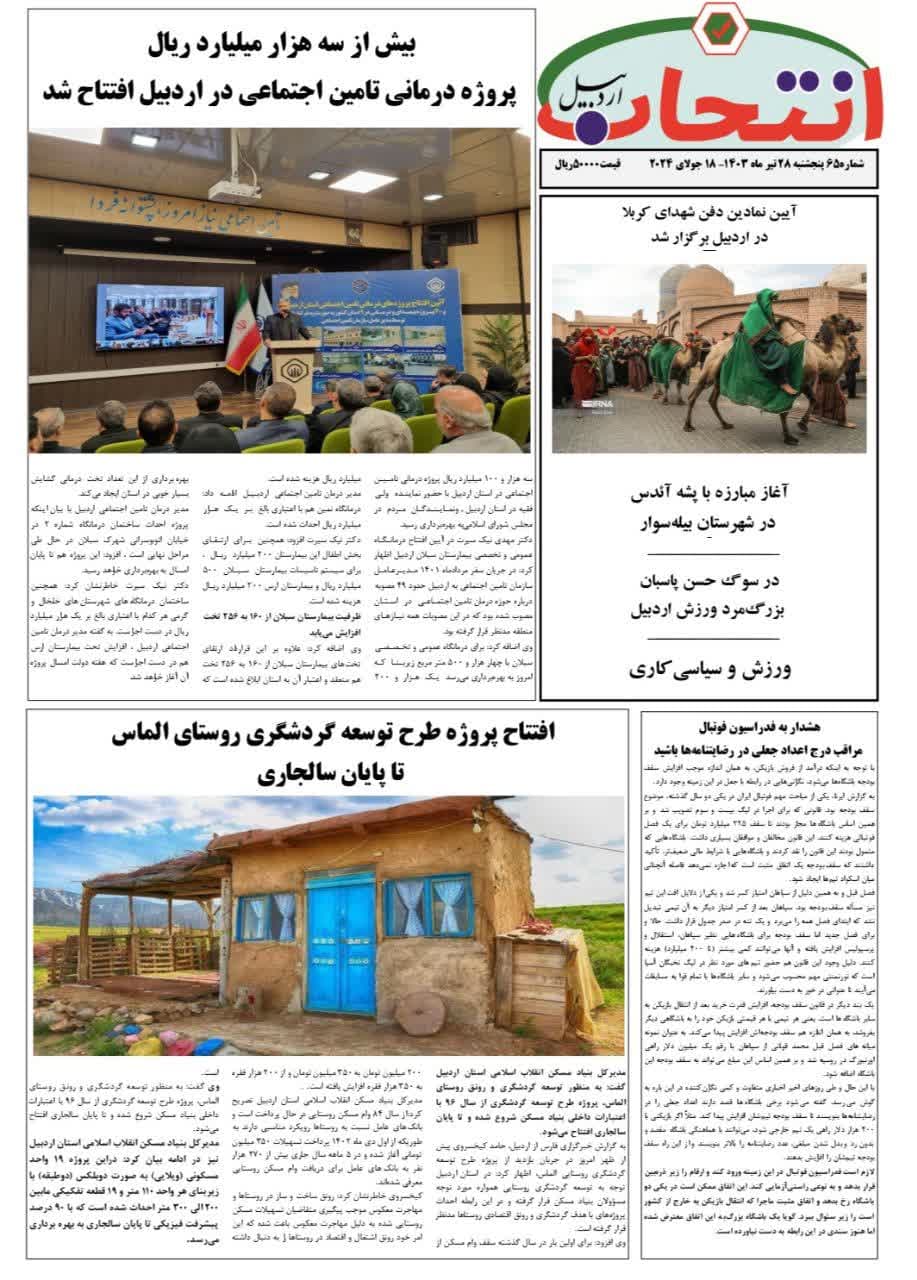شماره 66 هفته نامه انتخاب اردبیل منتشر شد پست بعدی»