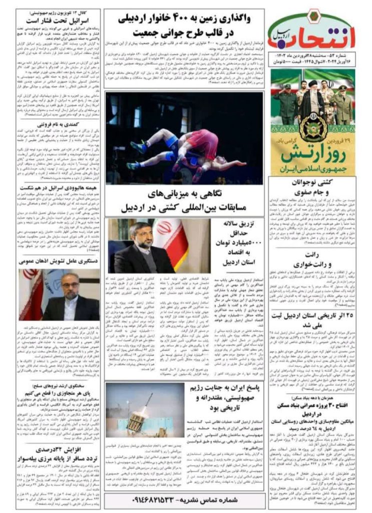 شماره 59 هفته نامه اتخاب اردبیل در چهار صفحه منتشر شد. انتخاب اردبیل – شماره 59